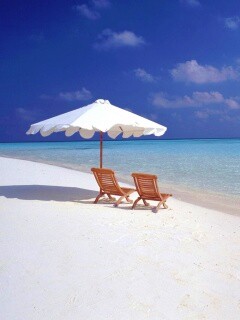 «Песчаный пляж с двумя жезлонгами»