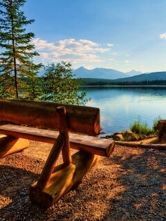 «Деревянная скамья на берегу озера»