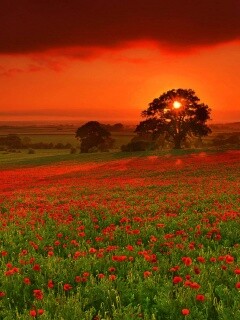 «Закат на поле красных цветов»