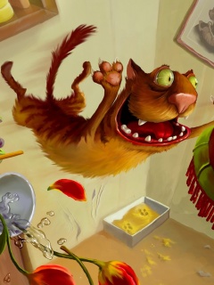 Обои для рабочего стола «Бешенный кот» 240х320 (оригинал 1600х1200)