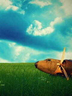 «Старый ржавый самолет на лугу»