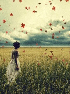 «Грустная девушка в поле травы»