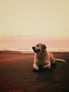 «Красивая собака на оранжевом песке»