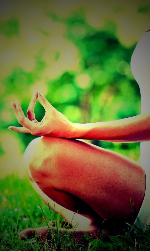 «Девушка медитирует в позе лотоса на траве»