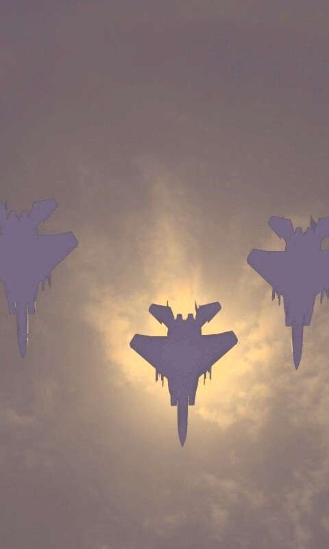 «Ряд истрибителей на фоне солнца»