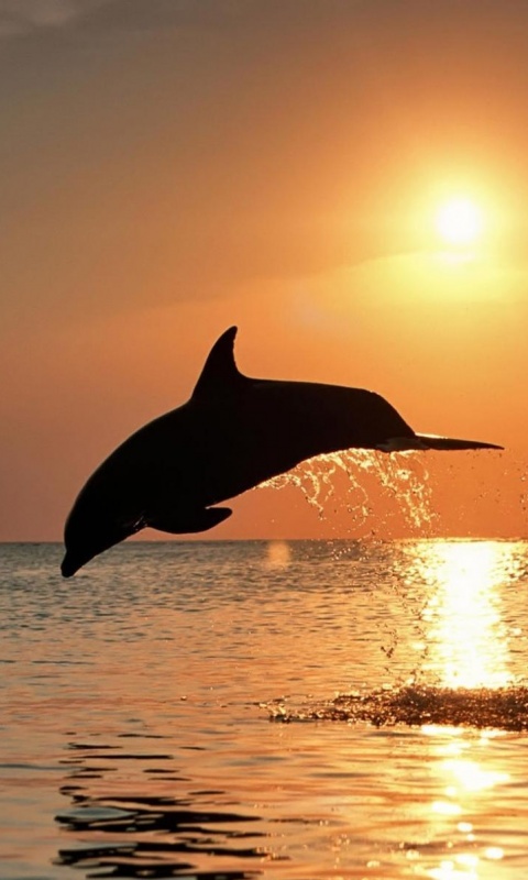 Обои для рабочего стола «Дельфины выпрыгивают из воды» 480х800 (оригинал 1920х1200)