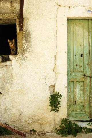 «Кот выглядывает из разрушенного дома»
