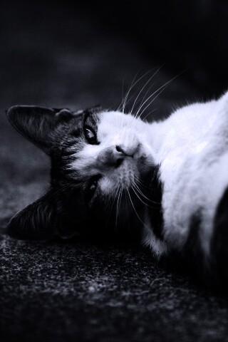 Обои для рабочего стола «Кот лежит на спине» 320х480 с фильтром gotham (оригинал 1600х1200)