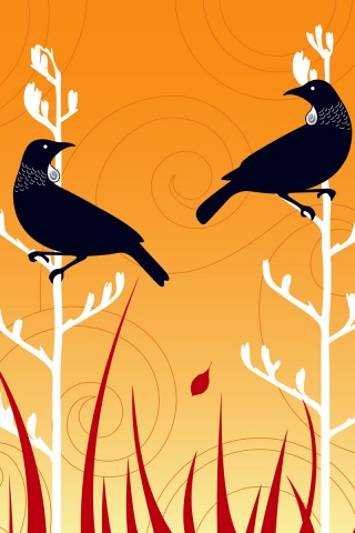 «Векторные стилизованные птицы на ветках дерева»
