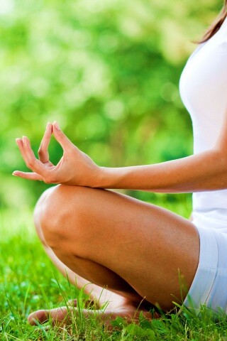 «Девушка медитирует в позе лотоса на траве»