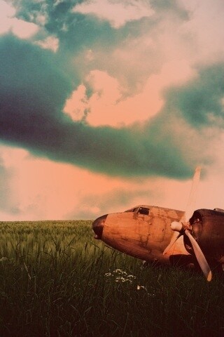«Старый ржавый самолет на лугу»