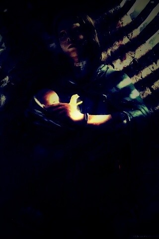 «Девушка с ребенком прячется от монстра»