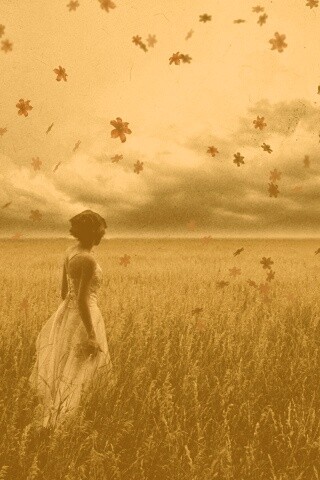 «Грустная девушка в поле травы»