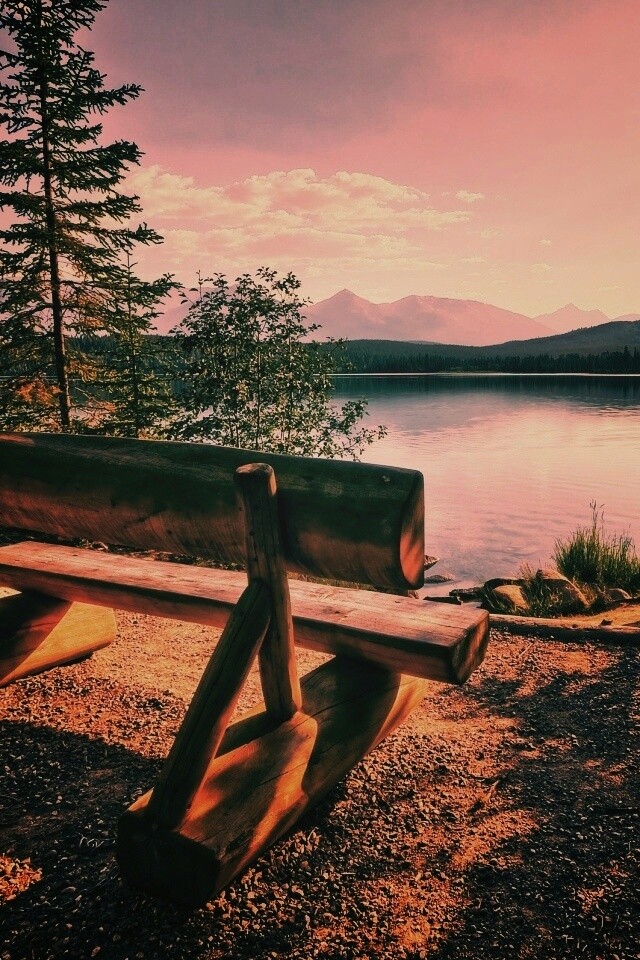 «Деревянная скамья на берегу озера»