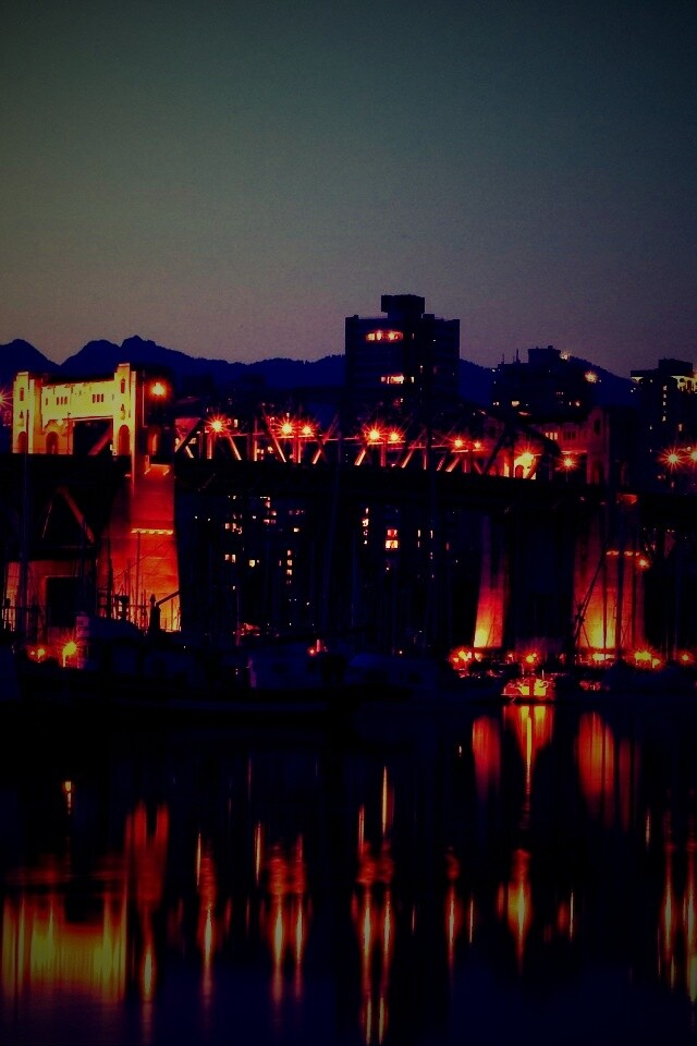 «Мост и катера на закате»