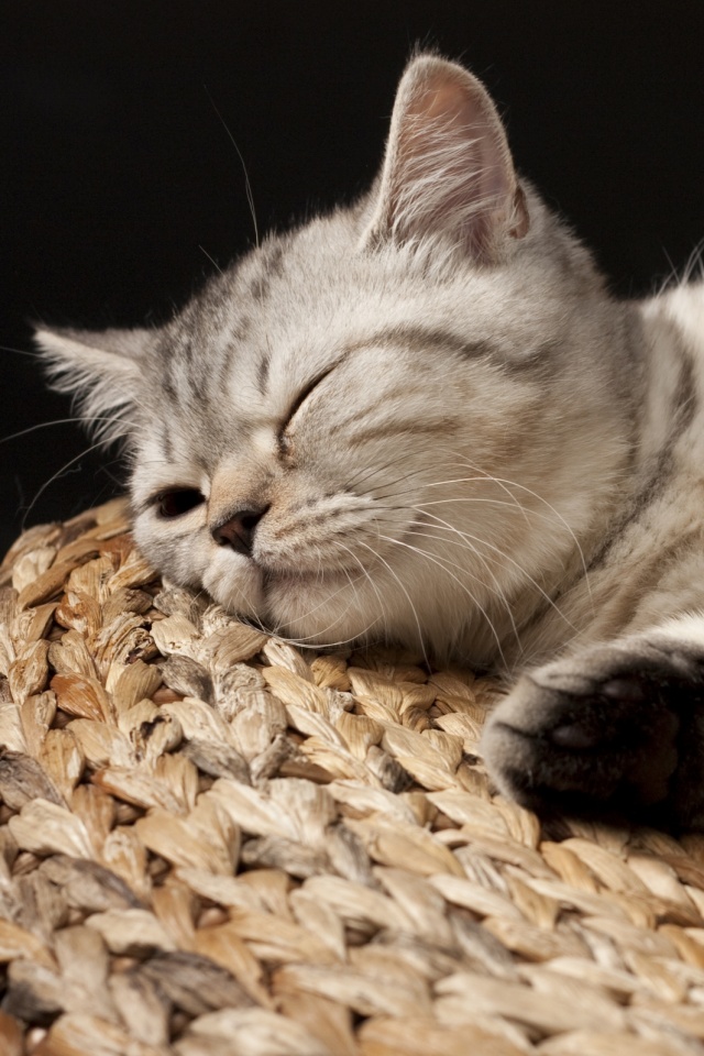 «Пушистый кот спит на корзине»