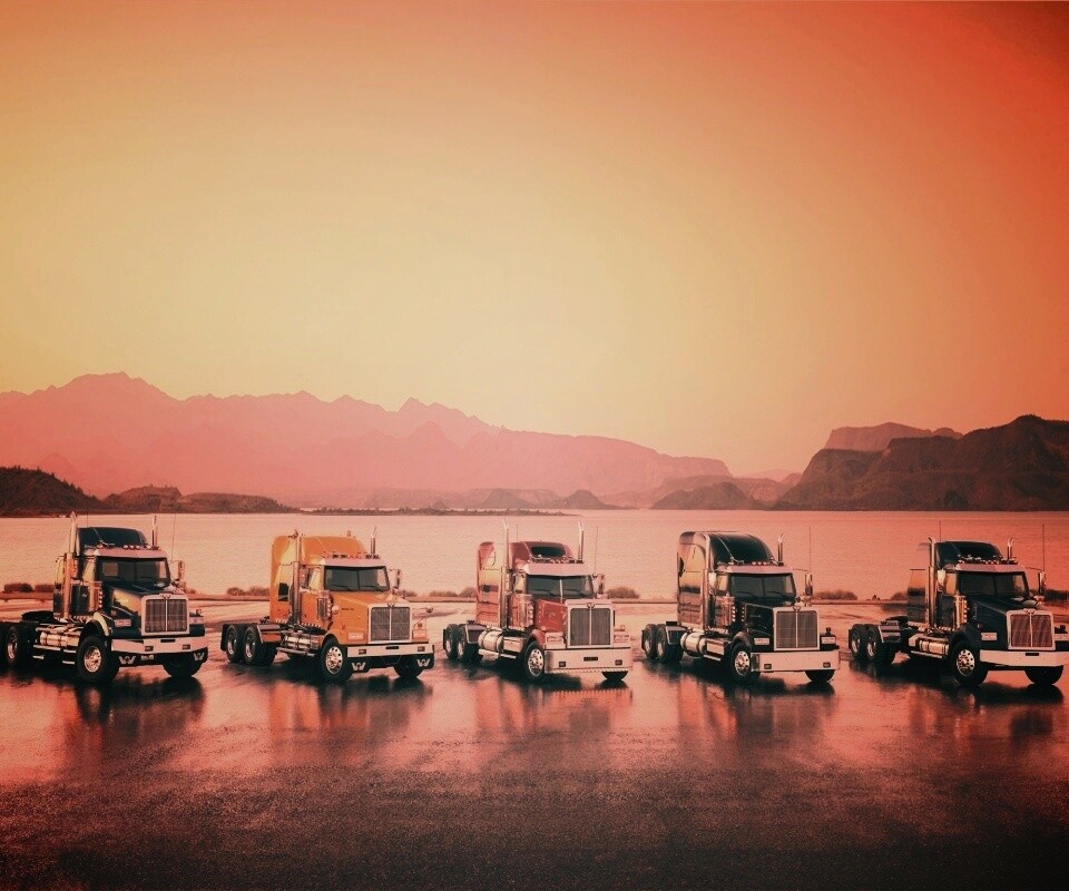 «Тягачи на фоне озера»