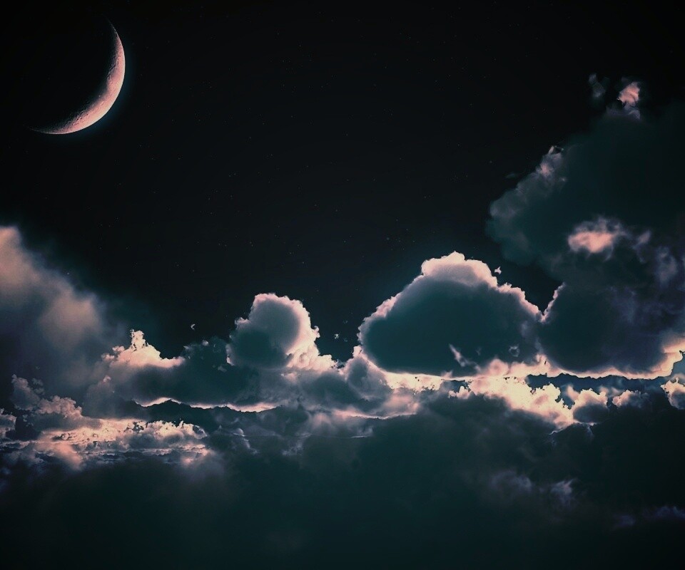 «Облака и луна в ночном небе»