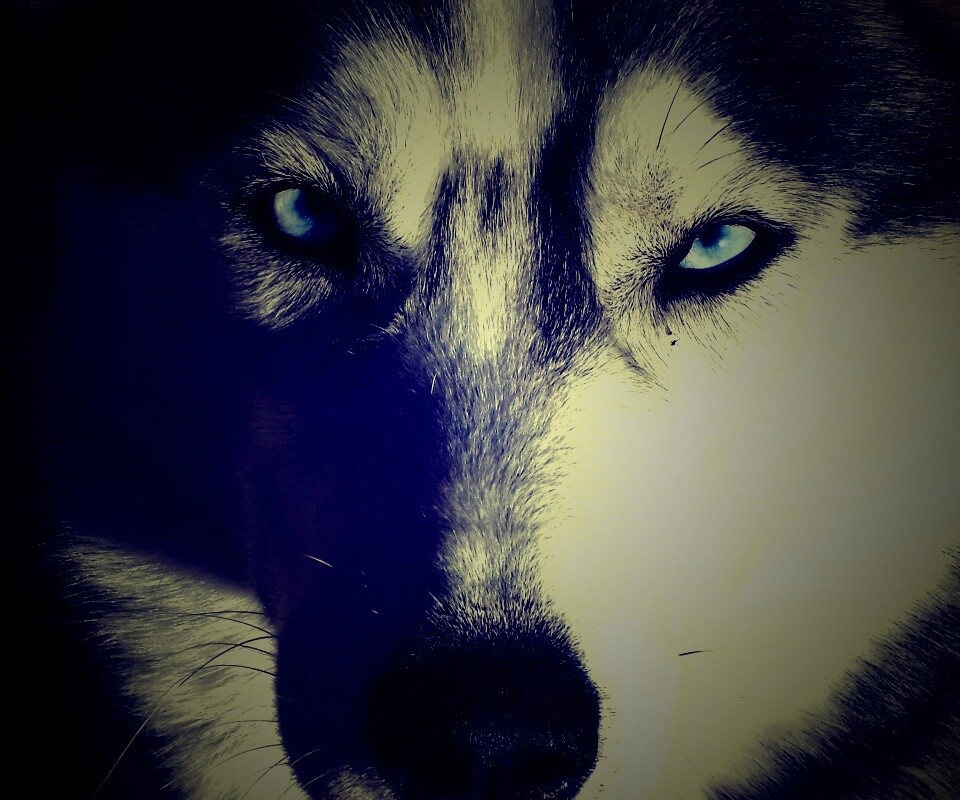 Обои для рабочего стола «Собака с голубыми глазами» 960х800 с фильтром lomo (оригинал 2560х1920)