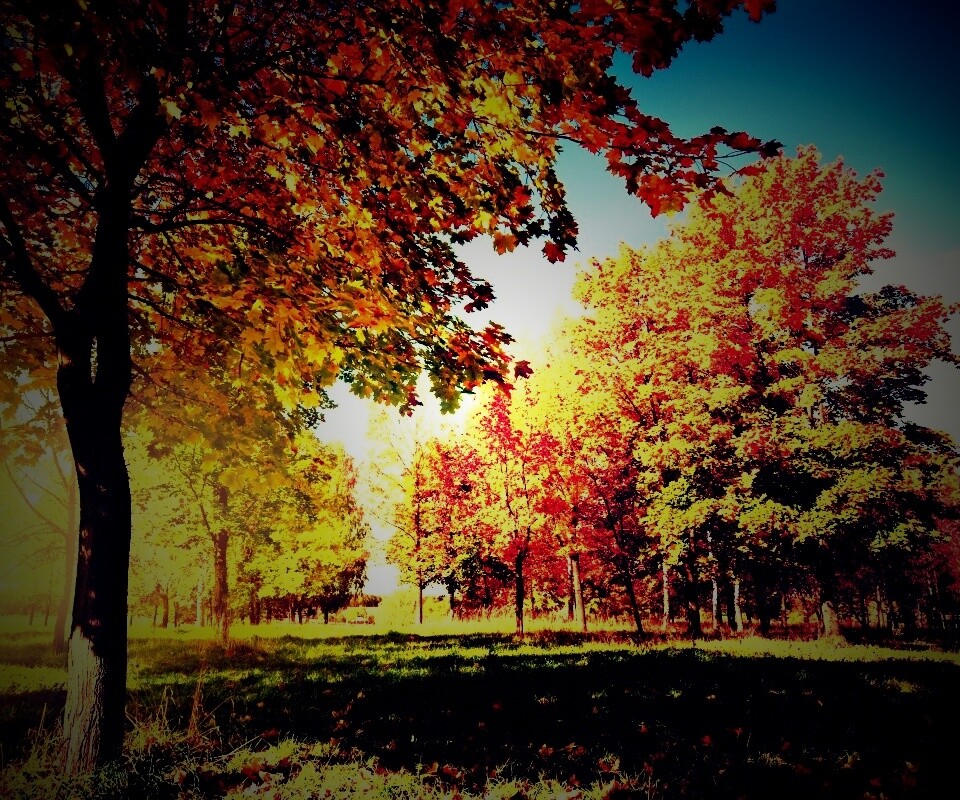 Обои для рабочего стола «Осень в лесу» 960х800 с фильтром lomo (оригинал 3872х2572)