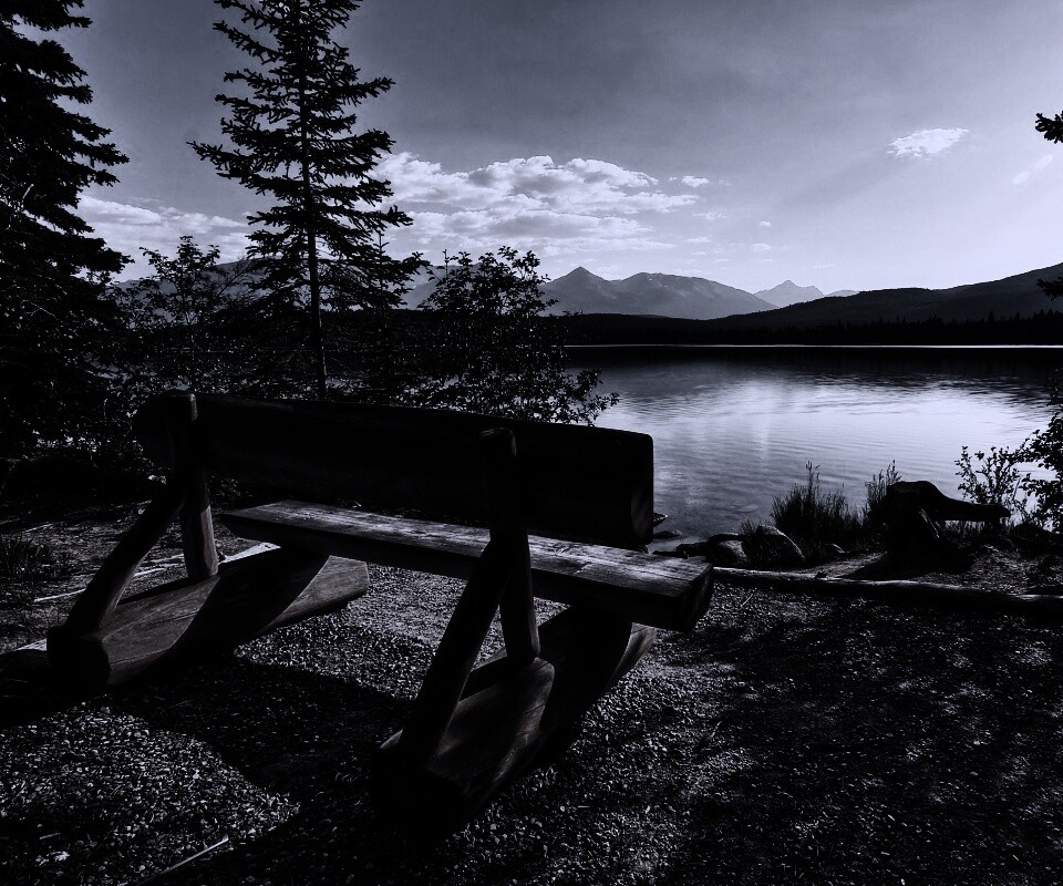 «Деревянная скамья на берегу озера»