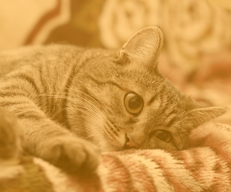 Обои для рабочего стола «Полосатая кошка» 960х800 с фильтром kelvin (оригинал 3888х2592)