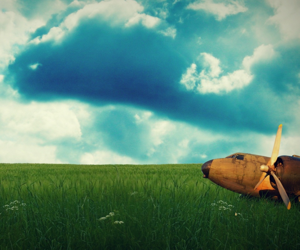 «Старый ржавый самолет на лугу»