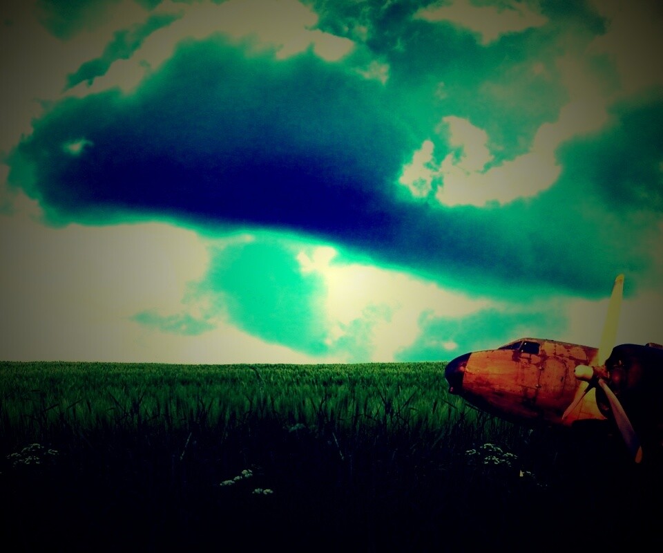 «Старый ржавый самолет на лугу»