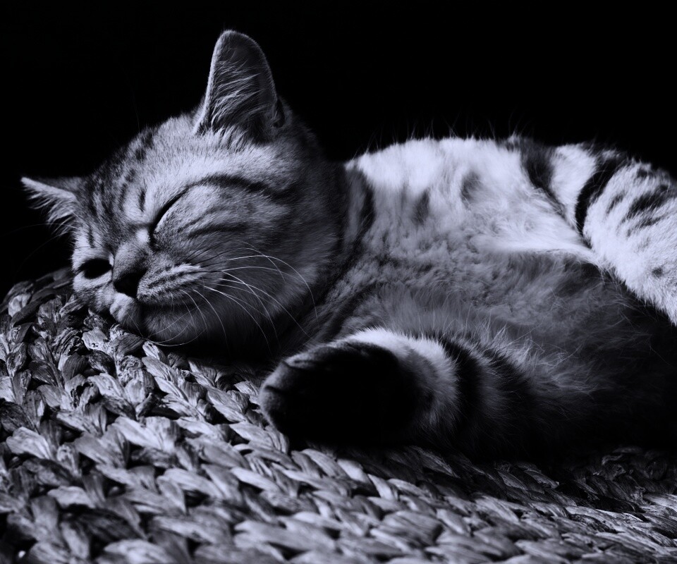 «Пушистый кот спит на корзине»
