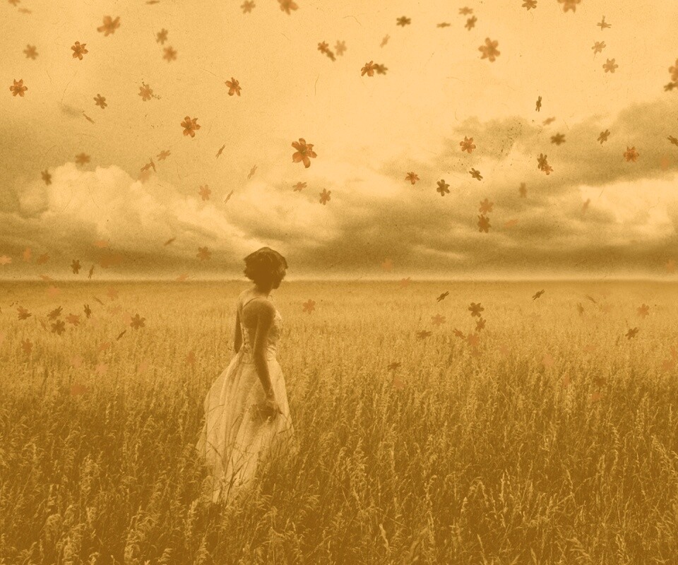 «Грустная девушка в поле травы»