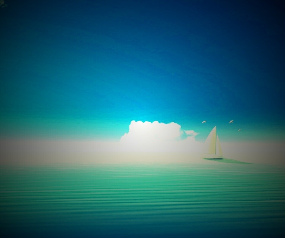 «Голубые обои под хорошее настроение с парусником»