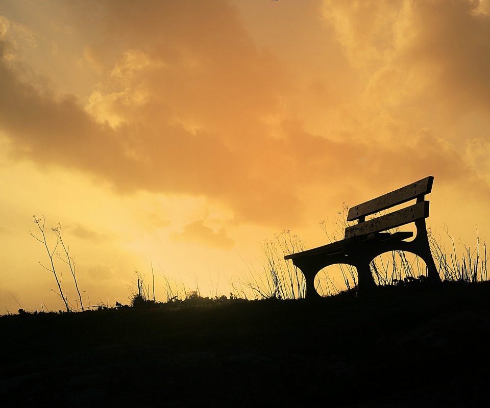 «Силуэт скамейки на фоне неба»