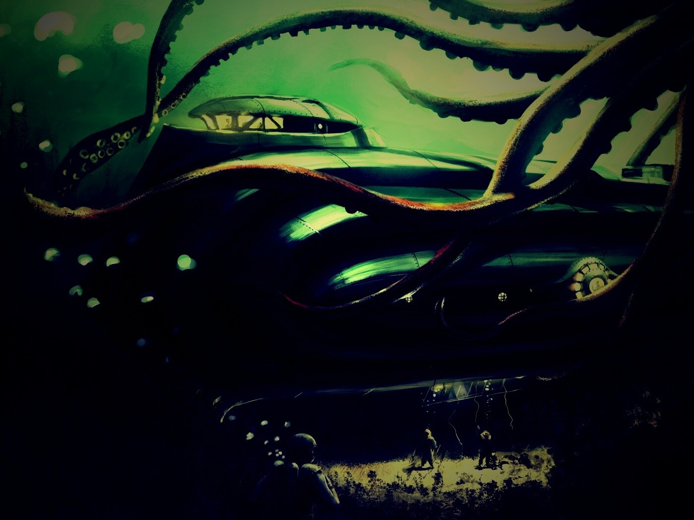 Обои для рабочего стола «Наутилус в плену щупалец» 1400х1050 с фильтром lomo (оригинал 4000х2176)