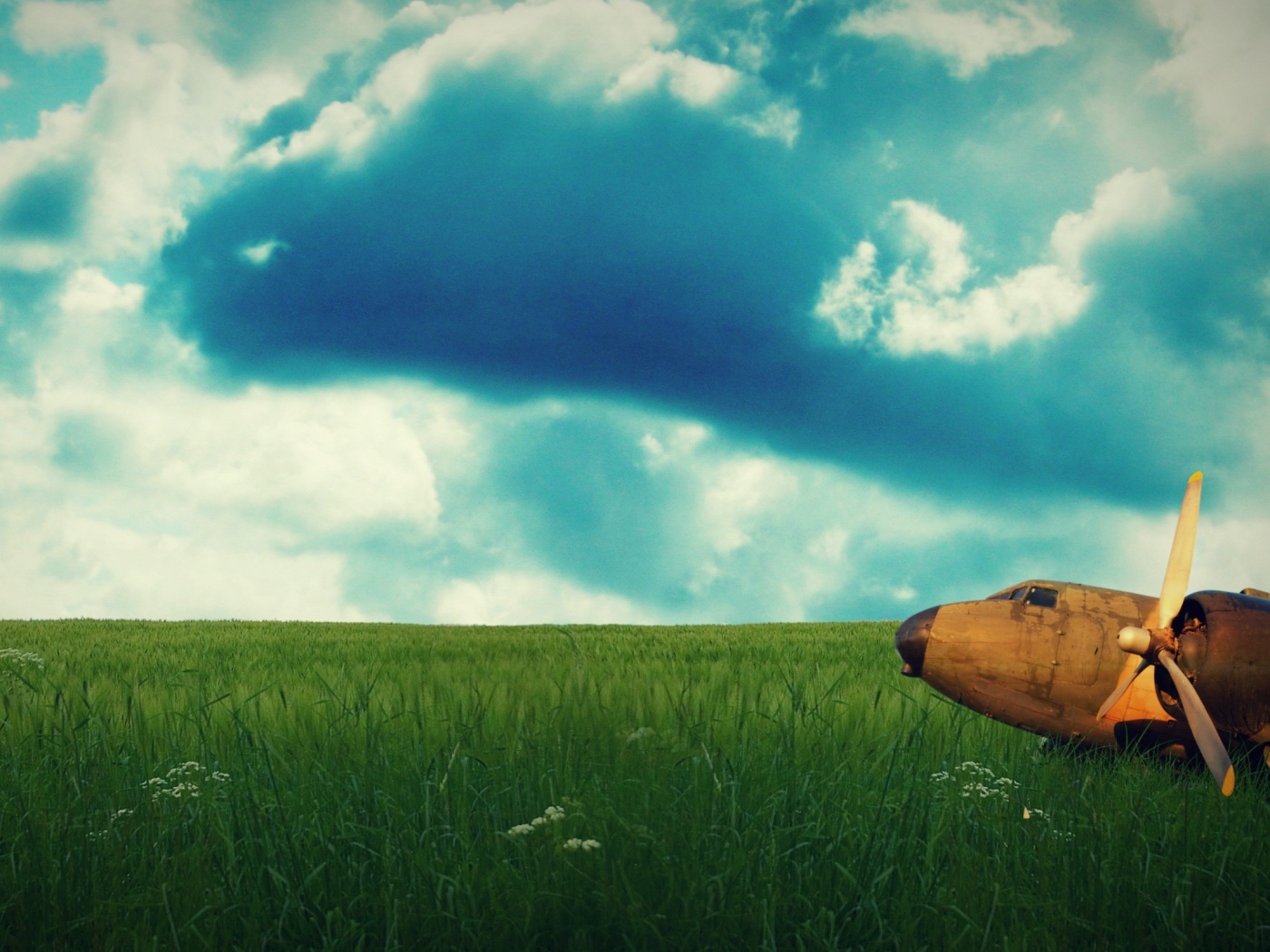 «Старый ржавый самолет на лугу»