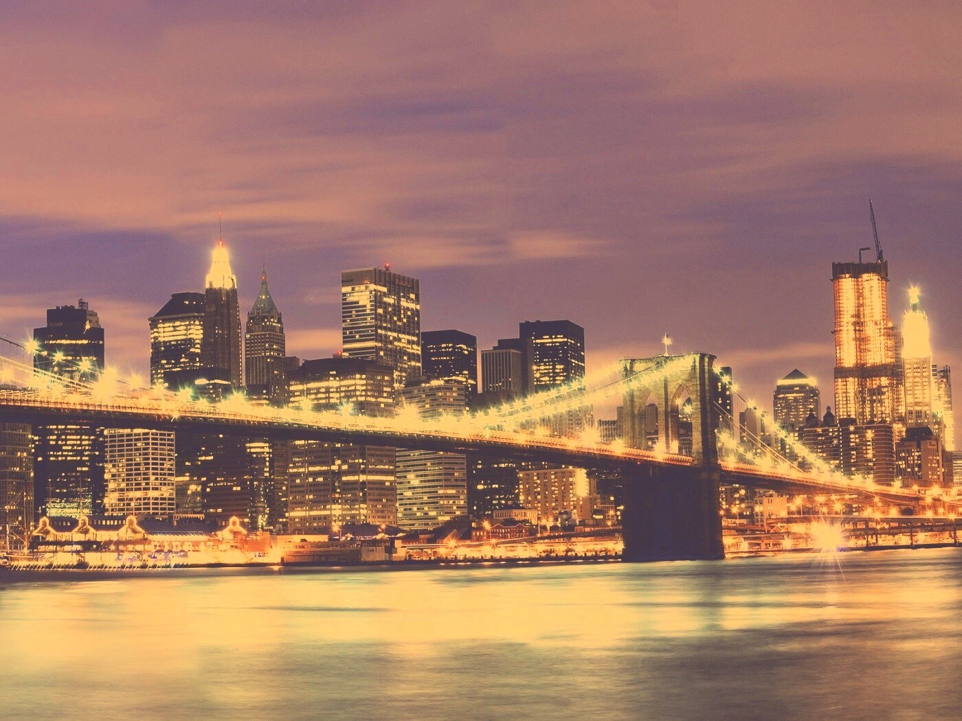 «Бруклинский мост на фоне ночного Нью-Йорка»