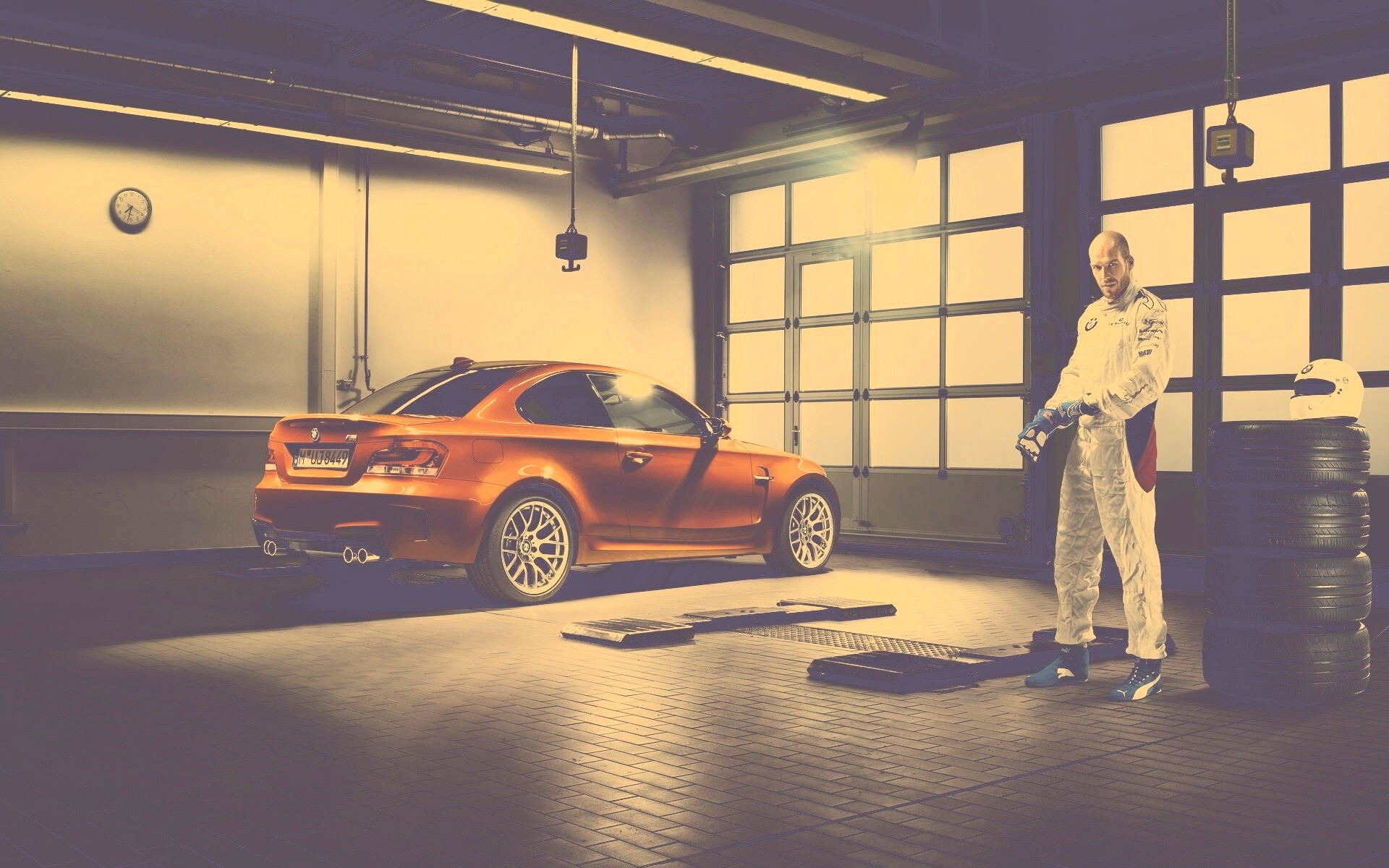 «Гонщик и BMW M1 в гараже»