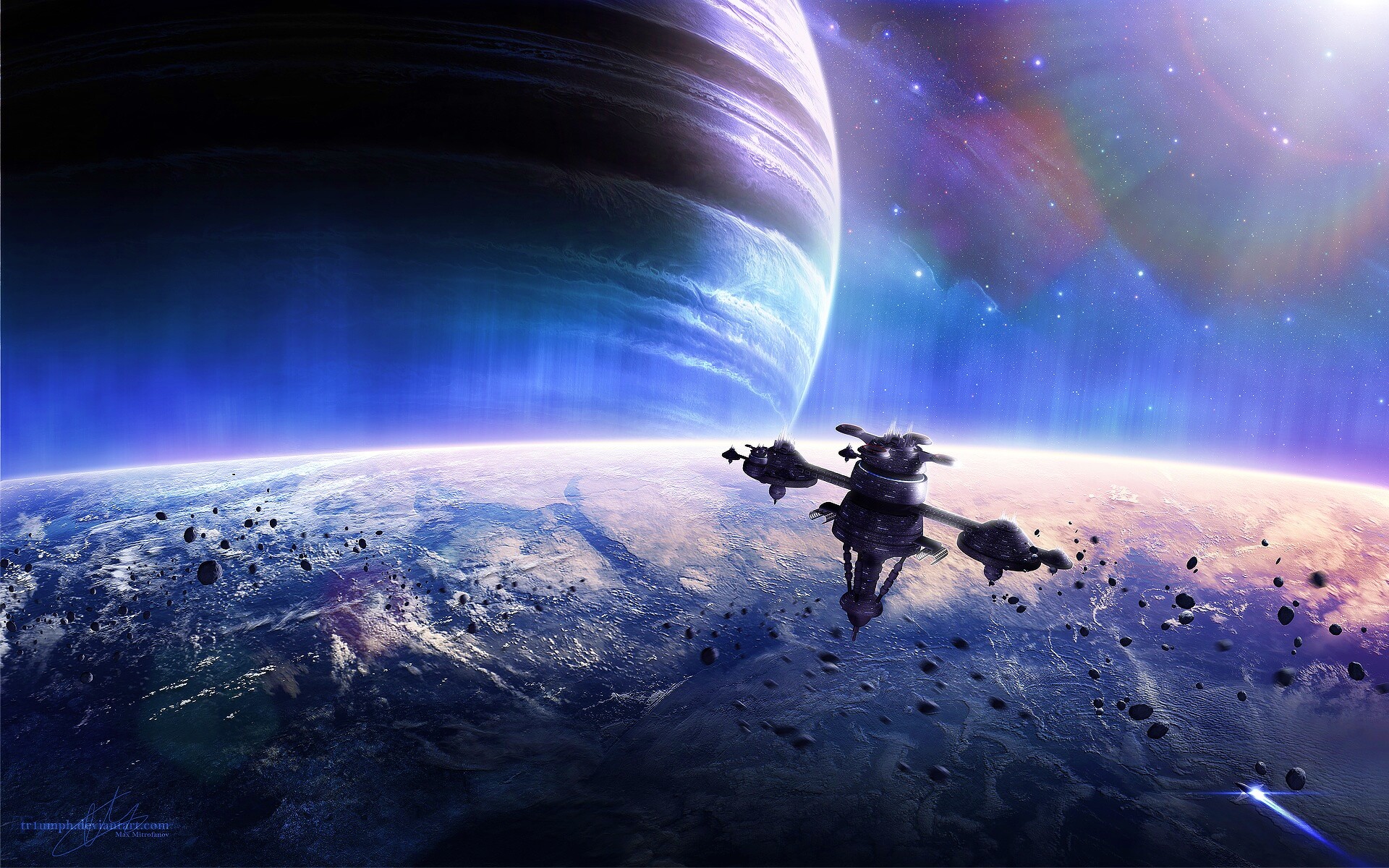 Обои для рабочего стола «Космический корабль» 1920х1200 с фильтром vibrance (оригинал 1920х1200)