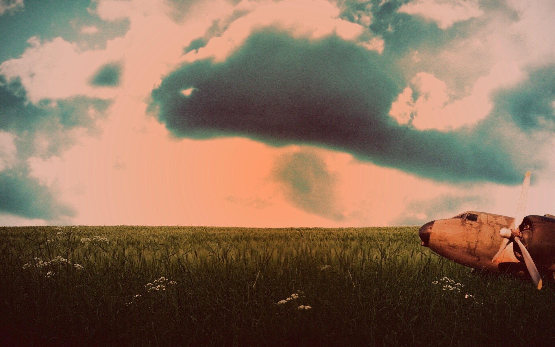 «Старый ржавый самолет на лугу»