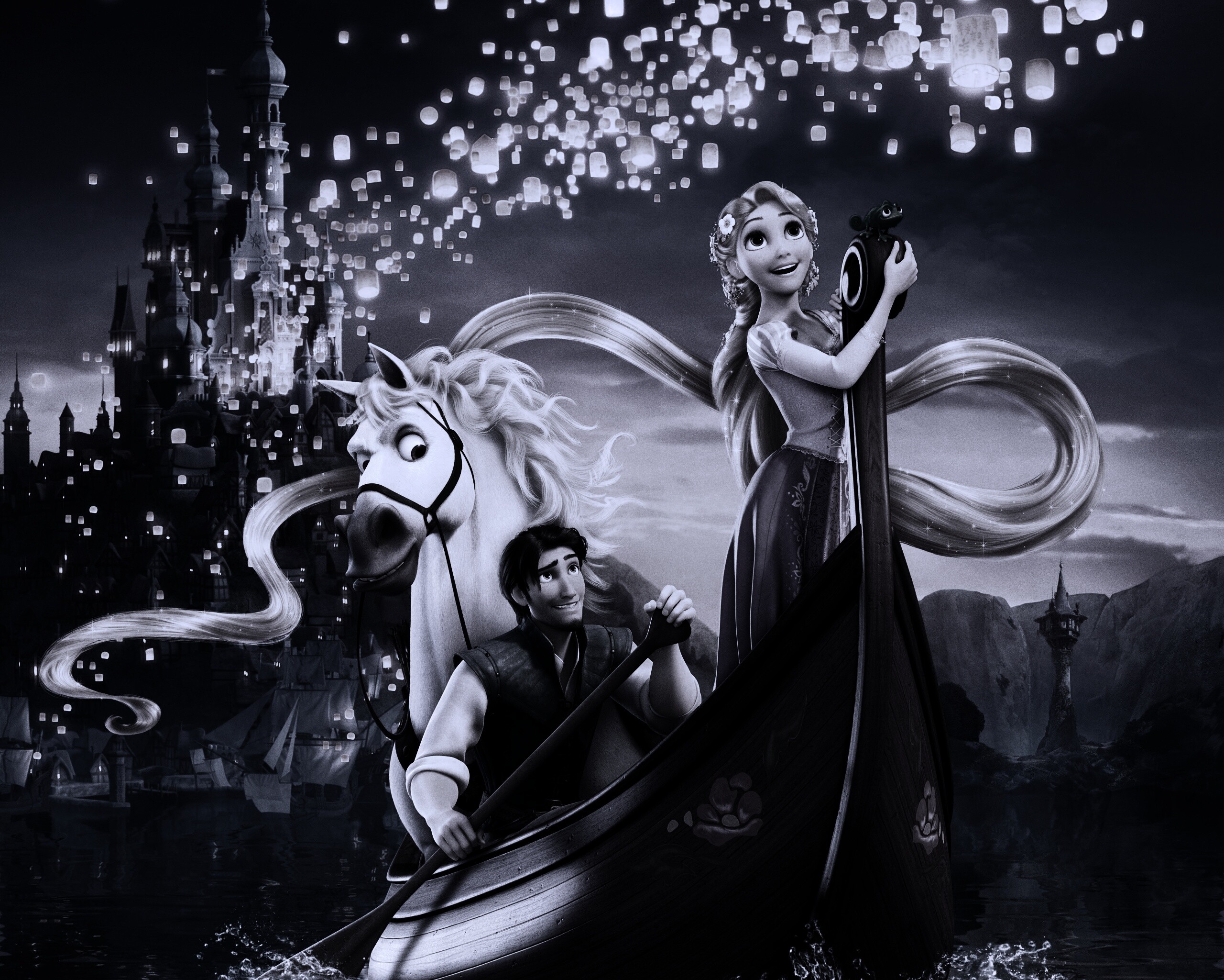 «Рапунцель принц и конь в лодке»