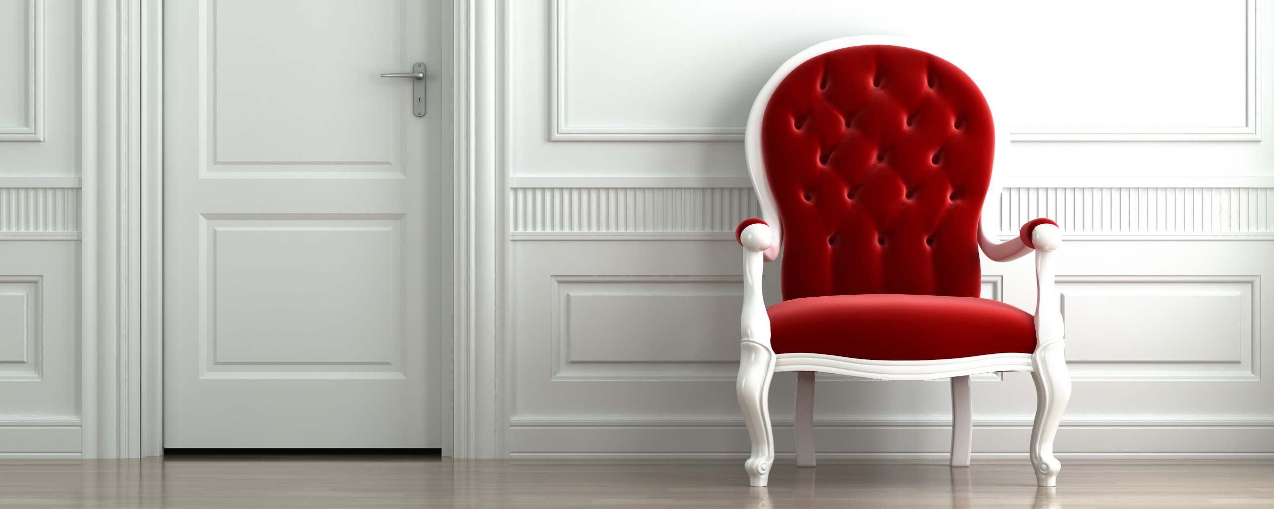 «красное кресло в белой комнате»