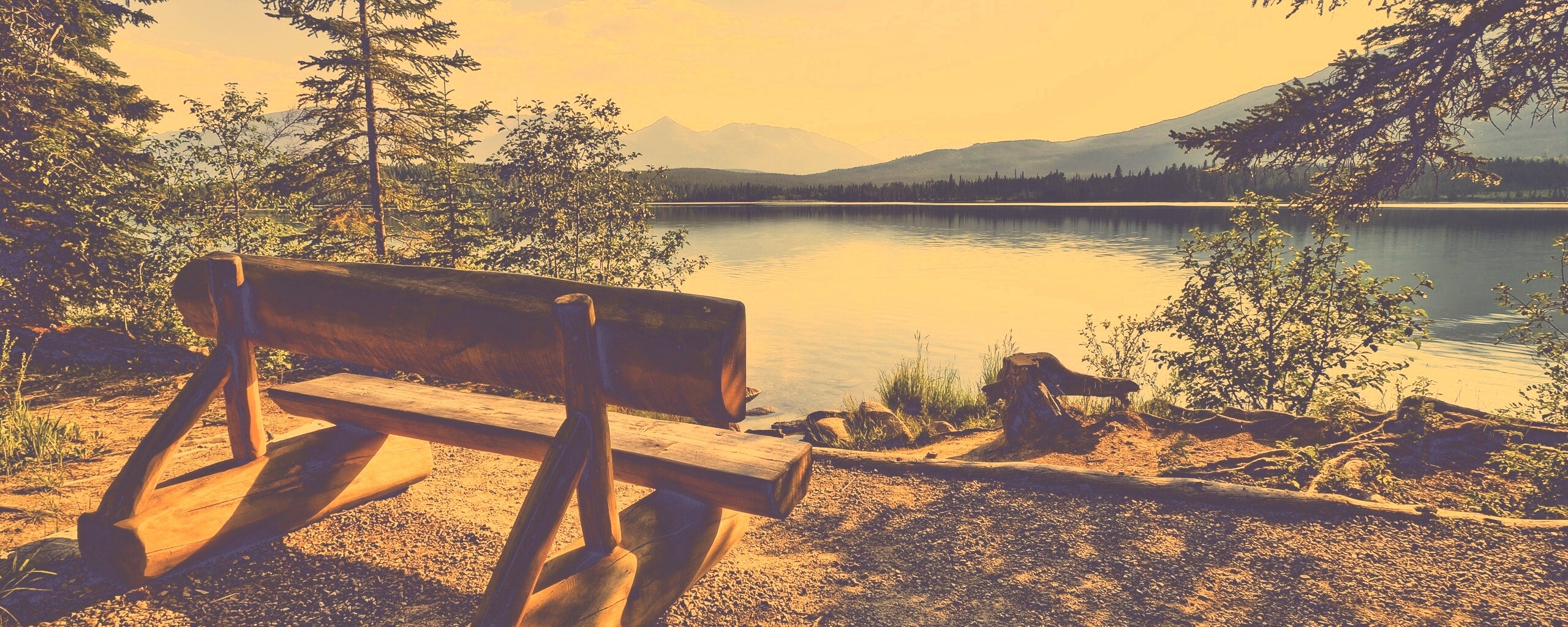 «Деревянная скамья на берегу озера»