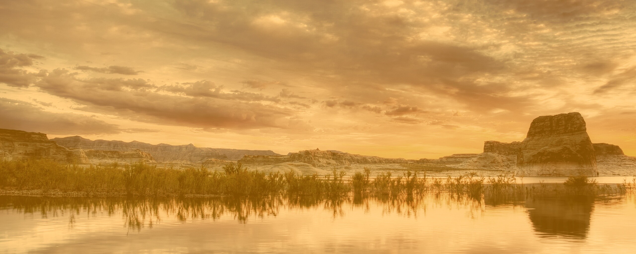 Обои для рабочего стола «Горное озеро» 2560х1024 с фильтром kelvin (оригинал 3200х2000)
