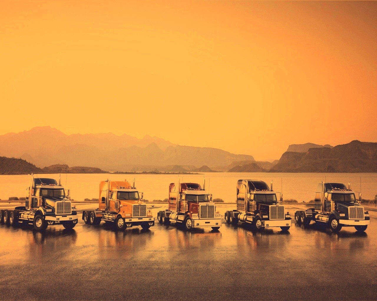 «Тягачи на фоне озера»