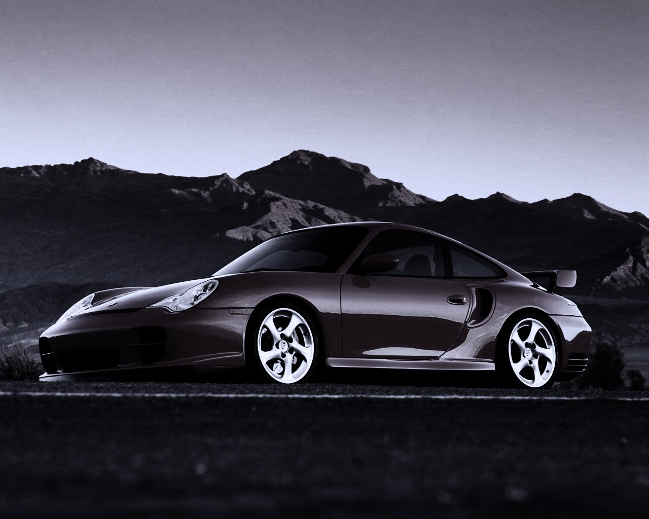 «Красный Порше на фоне гор»