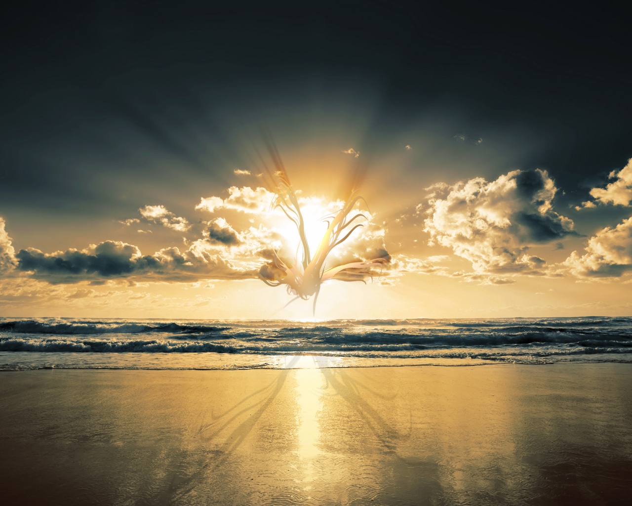 «Абстрактные перья на фоне заката»