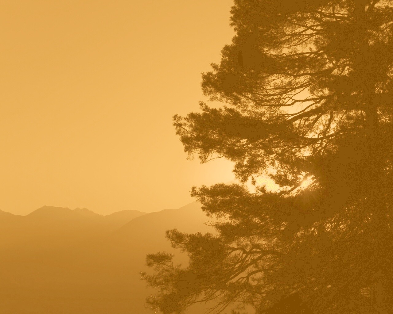 «Силуэт дерева на закате»
