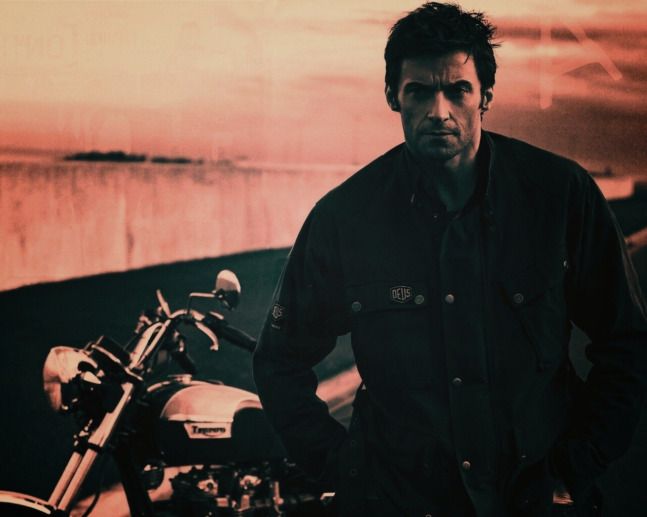 «Хью Джекман с мотоциклом»