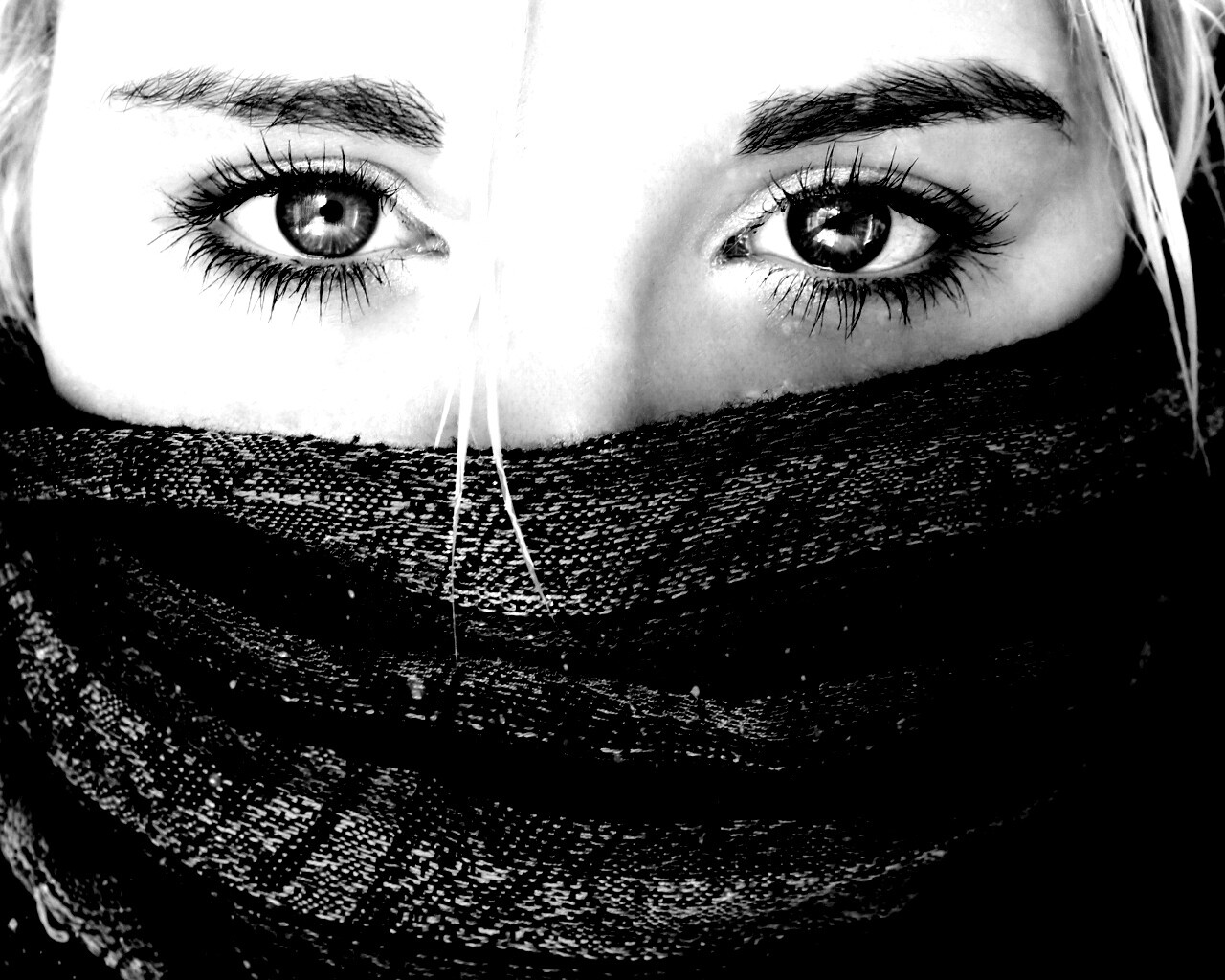 «Блондинка с шарфом на лице»