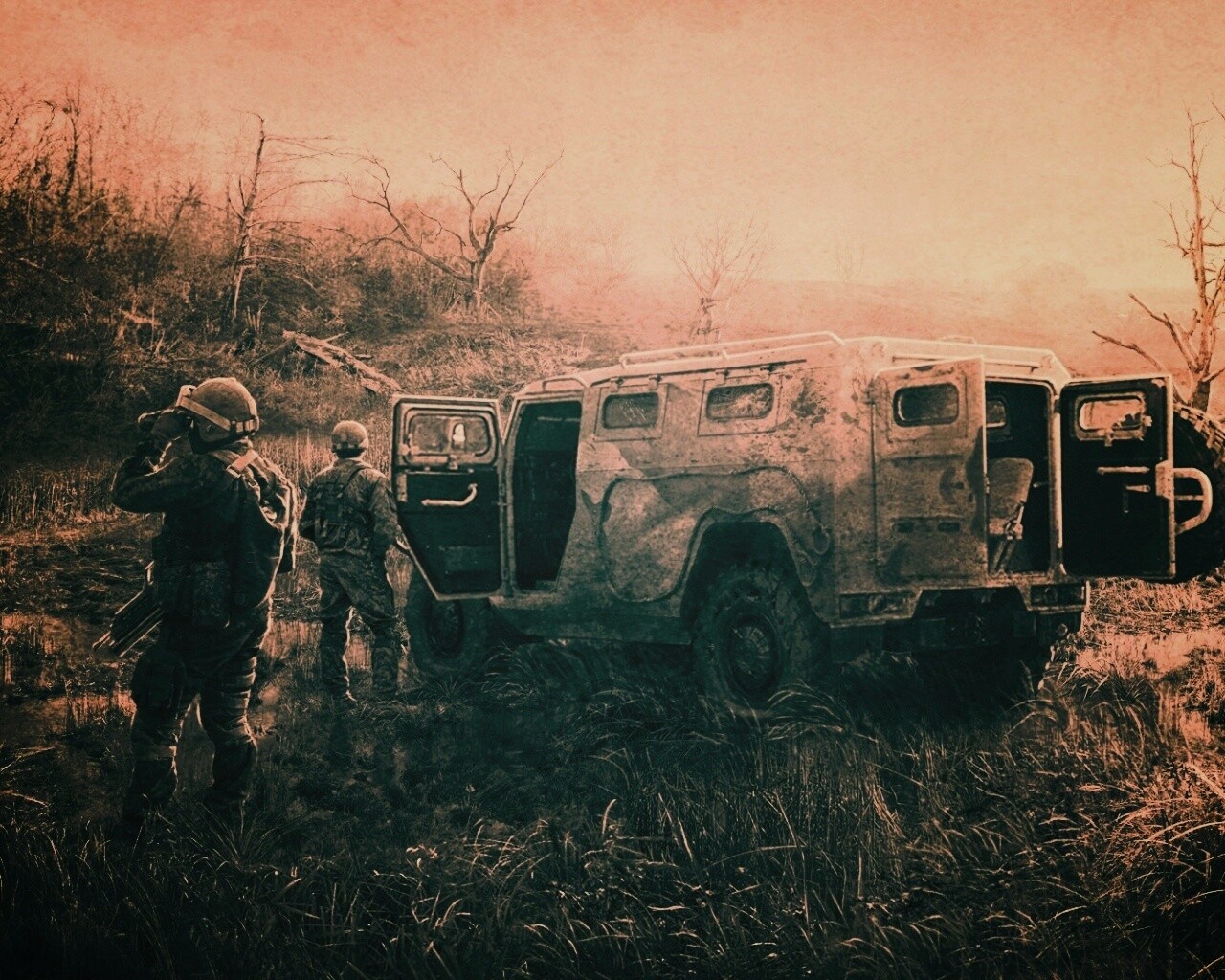 «Солдаты из сталкера на болоте»