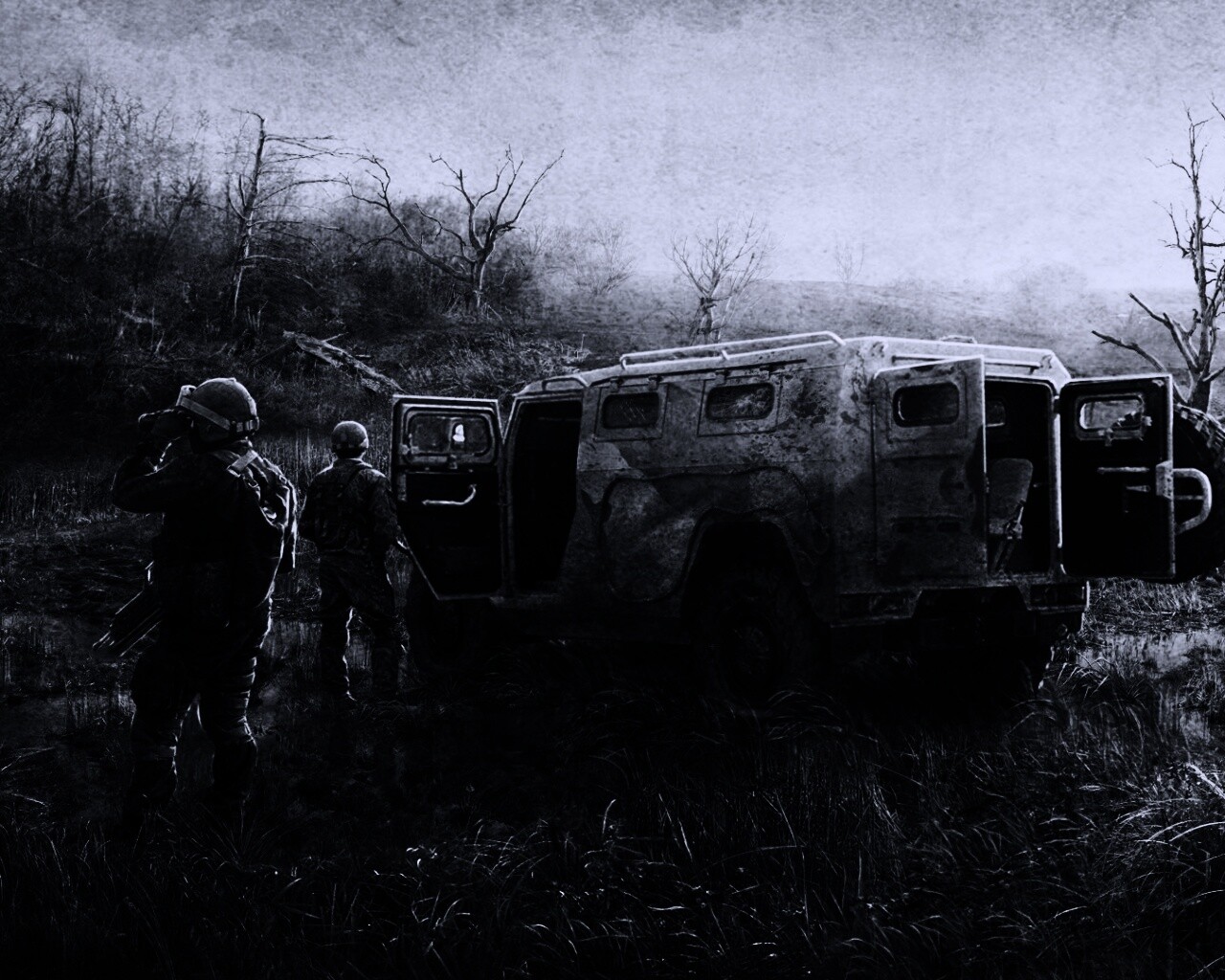 «Солдаты из сталкера на болоте»